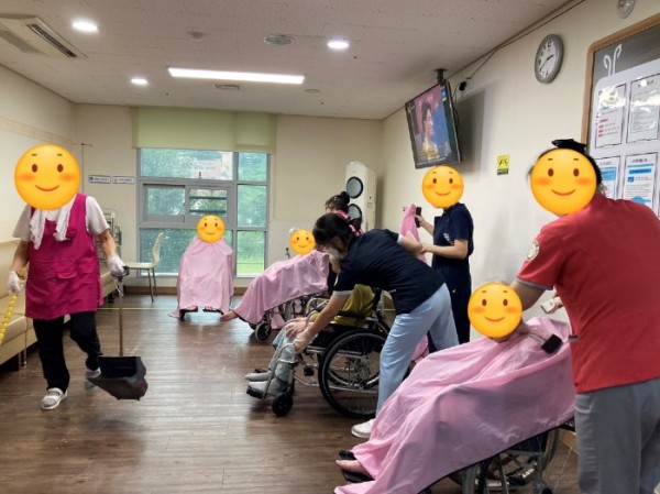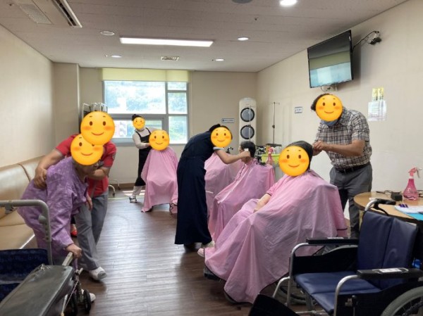 즐거운 추석을 맞이 하여 강남요양병원 전체 환우를 대상으로 이.미용서비스를 진행했어요.  코로나19 감염확산 예방을 위해 외부인 출입이 금지되면서 미용 경력있는 병원 직원들로 팀을 구성하여 커트 스타일을 최대한 입원환자분들 의견에 맞춰 이.미용서비스를 진행하였답니다