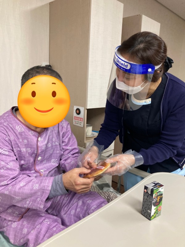 입원환자 간식 두유와 단팥빵 드렸어요~ 페이지 정보 작성자 사회복지사 작성일22-03-31 16:54 이전글 다음글 목록 본문 오늘은 강남요양병원 환우분들을 위해 두유와 단팥빵을 주문해 오후 간식으로 드렸어요. 장기입원중인 환우분들이 많은데 예전처럼 외촐도 자유롭지 못해 답답해 있을 환우분들을 위해 출출한 오후 시간에 간식을 준비해 드렸더니 반겨주셔서 저희도 기분이 좋았답니다. 이전글 다음글 목록